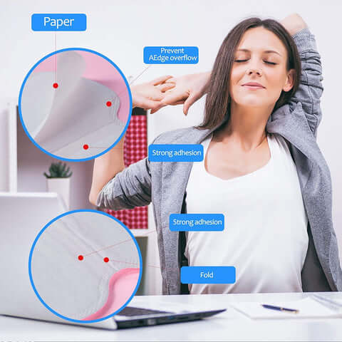 Diskret - Es ist schlank, diskret und unter der Kleidung praktisch unsichtbar. Die selbstklebende Rückseite sorgt für einen sicheren Sitz, ohne Rückstände auf Ihren Kleidungsstücken zu hinterlassen. Einfach abziehen und aufkleben für sofortigen Schutz vor Schweißflecken, sodass Sie überall beruhigt sein können.