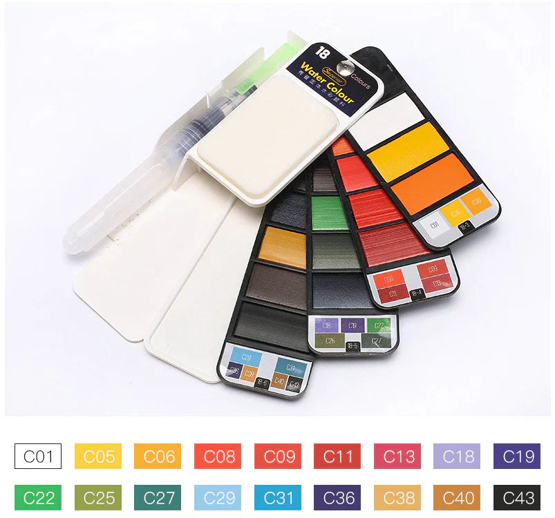 ✔ Kompakt und tragbar - Mit seinem kompakten Design und seinem geringen Gewicht ist DrawSet™ dein treuer Begleiter für spontane Kreativitätsschübe. Stecke ihn in deine Tasche und du bist bereit, die Welt zu malen.✔ Lebendige Farbvielfalt - Es hat eine große Auswahl an Farben, die das ganze Spektrum abdecken. Ob du Landschaften einfängst oder Charakteren Leben einhauchst, die Pigmente bieten unendliche Möglichkeiten für jeden Ausdruck.✔ Einfacher Gebrauch für unterwegs - Du musst dich nicht auf ein Studio beschränken. Die Aquarellpalette ist so konzipiert, dass du schnell und einfach darauf zugreifen kannst, um die Schönheit des Moments einzufangen, wo immer du bist.
