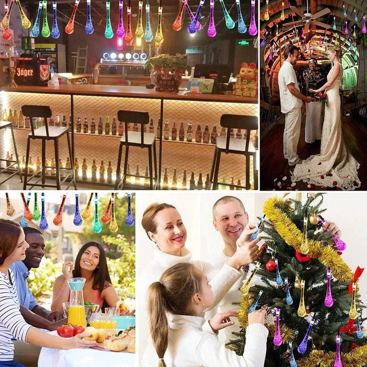 Einzigartiges Design - Die Solar Water Drop String Lights sind von dem natürlichen Element der Wassertropfen inspiriert und schaffen einen atemberaubenden und einzigartigen Look, der Ihr Haus hervorheben wird.