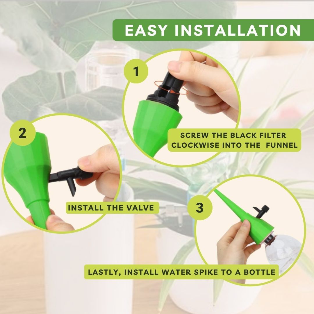 Schnelle Installation – Die Einrichtung des automatischen Bewässerungssystems dauert nur 10 Sekunden. Keine bohrenden Löcher, kein Zuschneiden von Flaschen – einfach anbringen und loslegen!