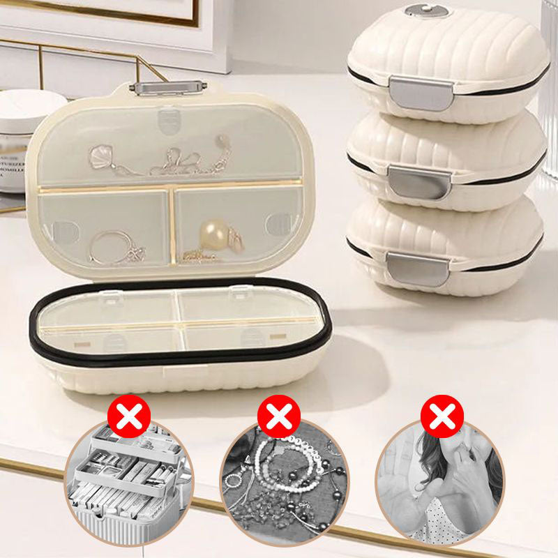 Perfekte Organisation – Der Juwelen-Pillen-Organizer verfügt über mehrere Fächer und Unterteilungen, die es dir ermöglichen, Pillen und Schmuck ordentlich und sicher zu verstauen. Verabschiede dich von verhedderten Halsketten und verlorenen Ohrringen – finde jedes Mal das perfekte Accessoire auf Anhieb!