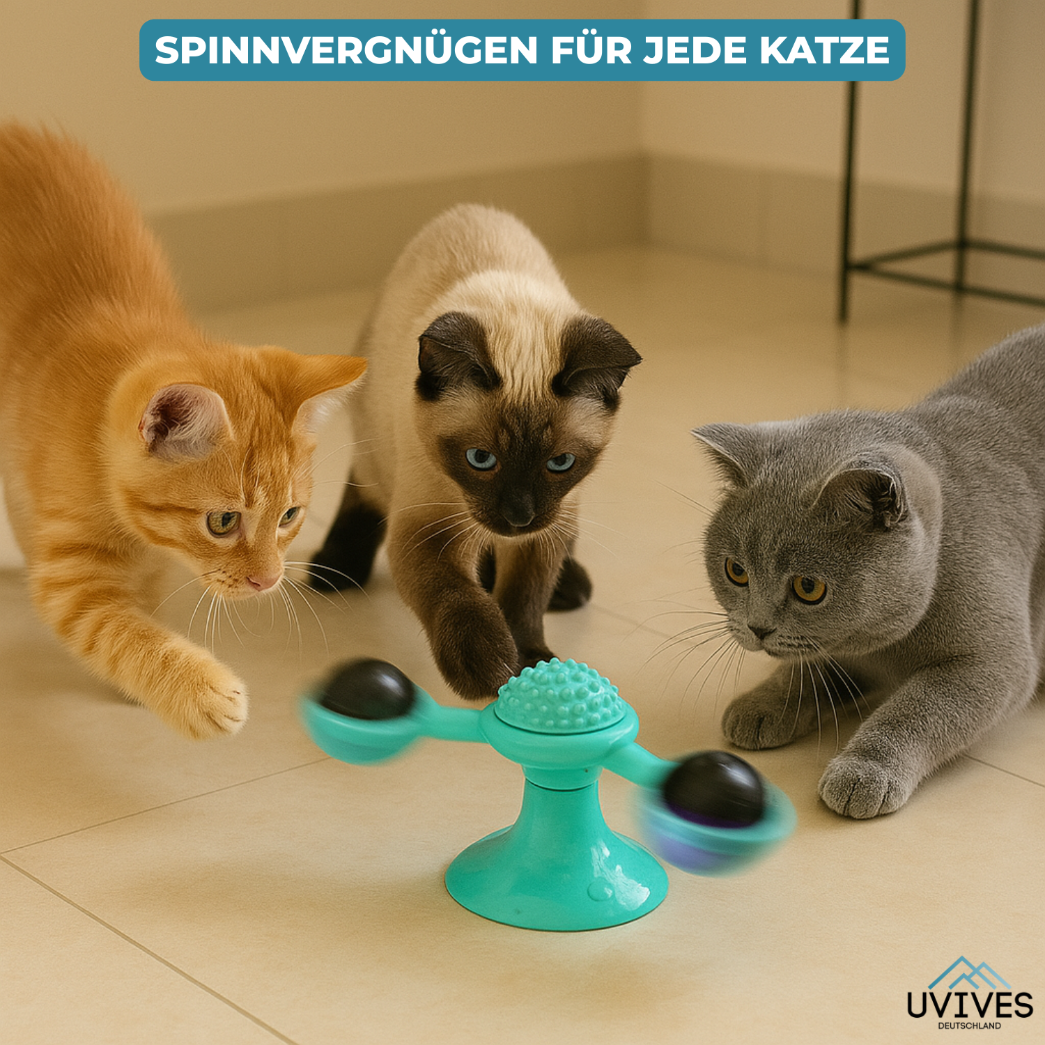 Mit SpinPaw™ bleibt Ihre Katze aktiv, verspielt und glücklich! Die drehbare Windmühle mit LED-Licht und Katzenminze sorgt für stundenlange Unterhaltung und lindert Langeweile und Stress – perfekt für allein gelassene Katzen.