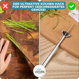 Müssen Sie oft Frühlingszwiebeln oder Kräuter schneiden und wünschen sich eine schnellere Lösung? Mit BloomBlade™ raspeln und schneiden Sie Gemüse in feine, gleichmäßige Streifen – mühelos und effizient. Perfekt für dekorative Gerichte und präzise Schnitte!