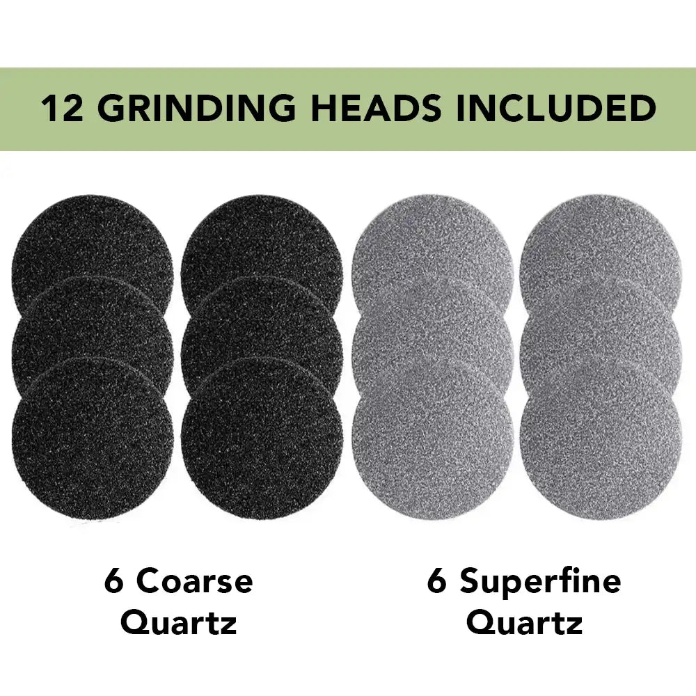 2️⃣ Schritt 2: Wählen Sie den passenden Schleifkopf – feinkörniger Quarz für empfindliche Haut oder grobkörniger Quarz für stärkere Hornhaut.